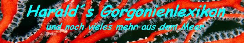 Das Gorgonien-Lexikon ist eine deutschsprachige Datenbank über mein Interessensgebiet den Gorgonien, einem Teilgebiet der Meerwasseraquaristik. Dieses Lexikon wurde geschaffen, um zusätzliche Haltungshinweise - auch multimedial - den vielen Gorgonien zuzuordnen. Schon jetzt erhebt dieses Lexikon den Anspruch bei ausgesuchten Gorgonien Arten das umfassendste deutsche zentrale Nachschlagewerk zu sein. Das Lexikon ist aber auch ein Portal für alle Meerwasseraquarianer im Allgemeinen. Ich wünsche euch eine informative Zeit. Have a good time. Keine Navigation zu sehen, einfach oben auf das Banner klicken. |